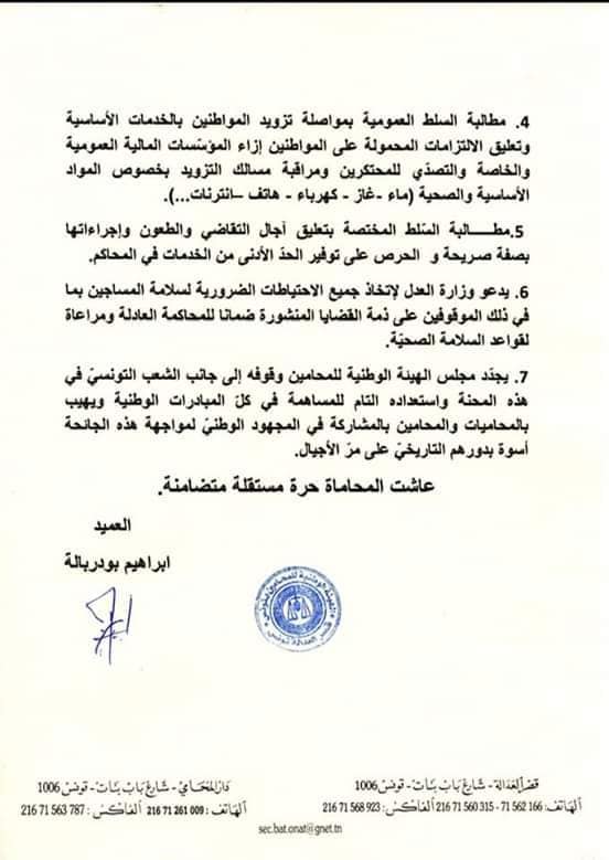أخبار وطنية الهيئة الوطنية للمحامين تدعو رئيس الجمهورية لاعلان حالة الطوارئ الصحية وتصدر هذا البيان
