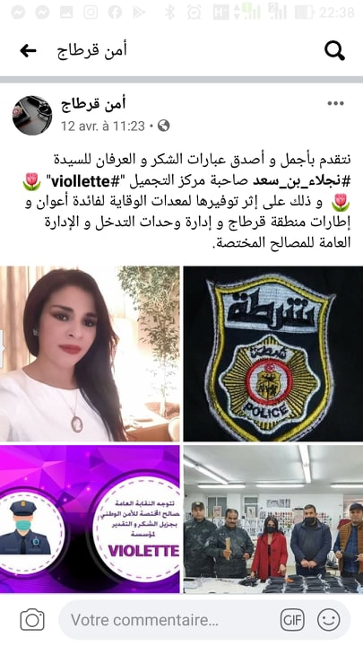 يتواصل دعم مجهود الدولة في مكافحة انتشار وباء الكورونا من قبل نجوم تونس من شتى القطاعات من خلال جمع التبرعات لمساعدة المعوزين، أما نجلاء بن سعد فقد اختارت المساهمة باطلاق مبادرتها الخاصة في توفير مستلتزمات حماية صحة العامل من أمنيين وغيرهم والذين هم معرضين للعدوى لطبيعة عملهم.