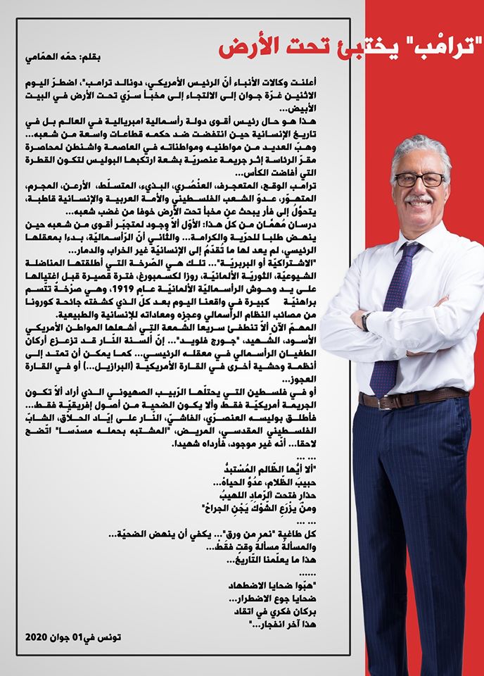 أخبار وطنية "ترامْب" يختبئ تحت الأرض بقلم: حمّه الهمّامي