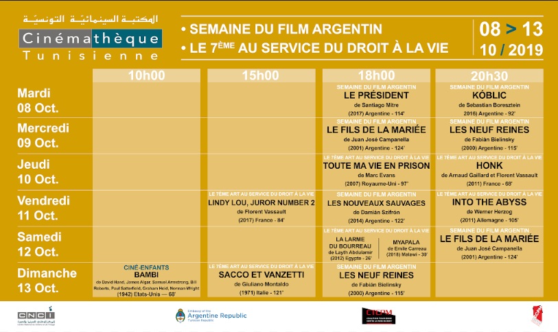 - أسبوع الفيلم الأرجنتيني (للمرة الثانية على التوالي) :