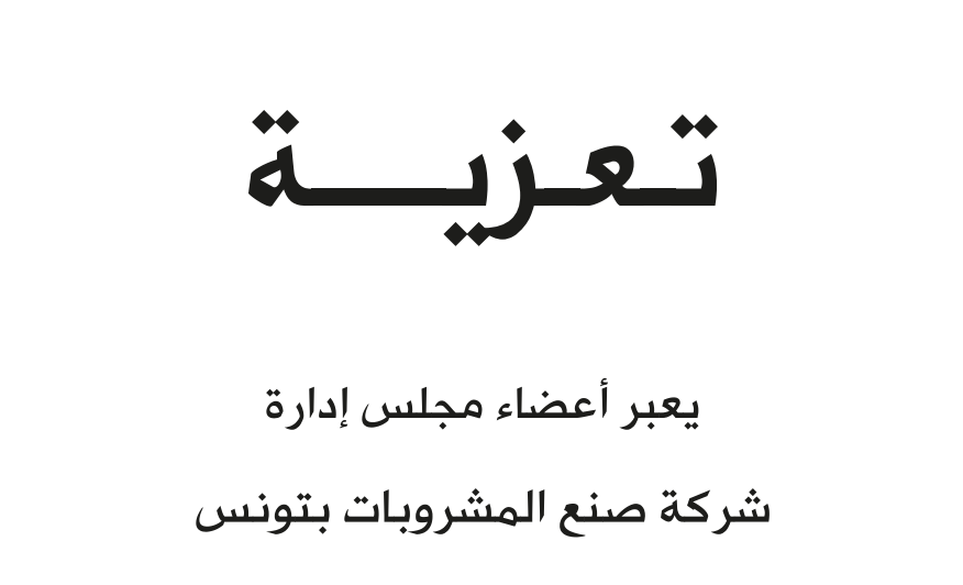 يعبر أعضاء مجلس إدارة شركة صنع المشروبات بتونس والإدارة العامة والإطارات والعمال، عن حزنهم العميق لوفاة رئيس مجلس الإدارة السيد محمد بوصبيع.