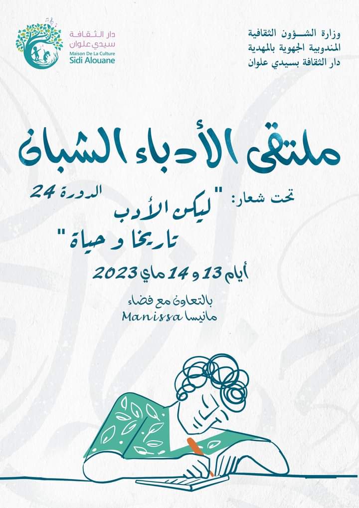 تنظم دار الثقافة سيدي علوان يومي 13 و14 ماي 2023 الدورة 24 للملتقى الوطني للأدباء الشبان تحت شعار "ليكن الأدب تاريخا وحياة ".