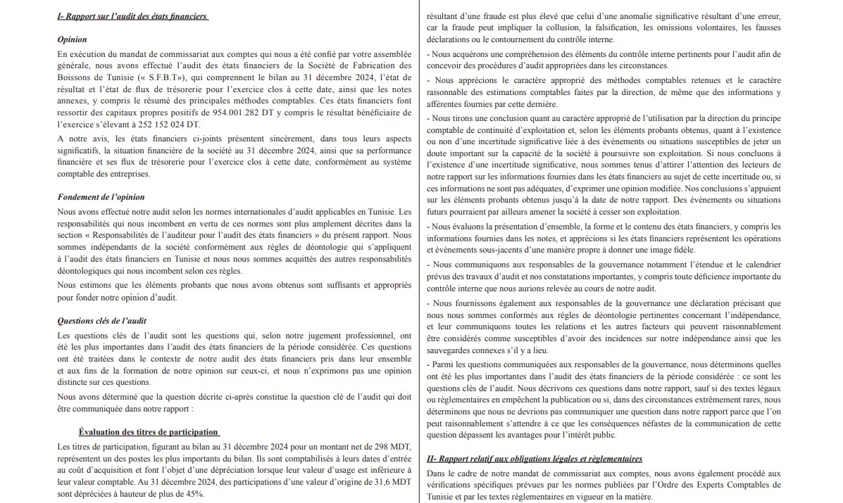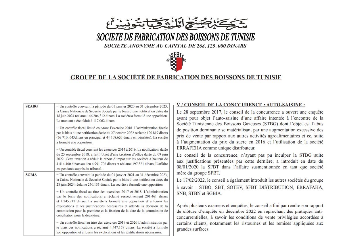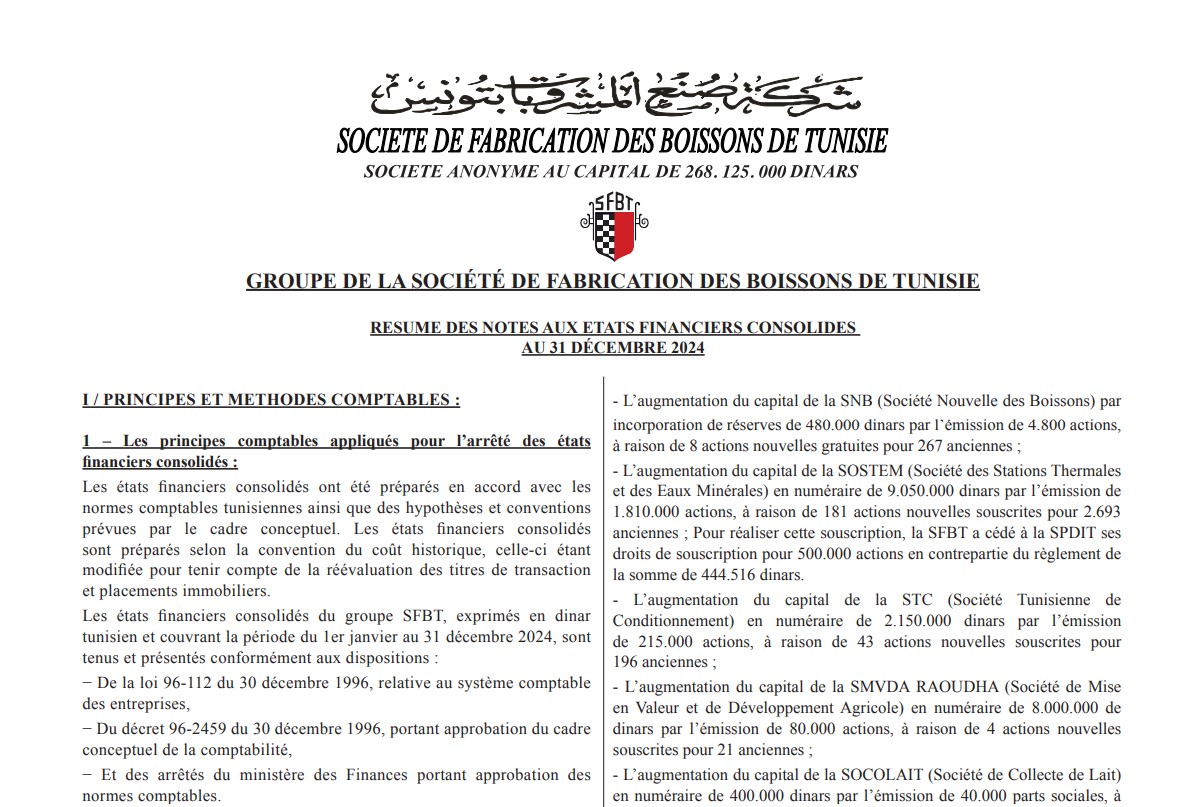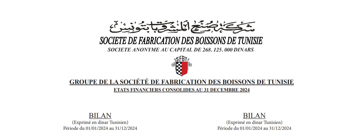 اقتصاد شركة صنع المشروبات بتونس (SFBT) تنشر قائماتها المالية الى غاية 31 ديسمبر 2024
