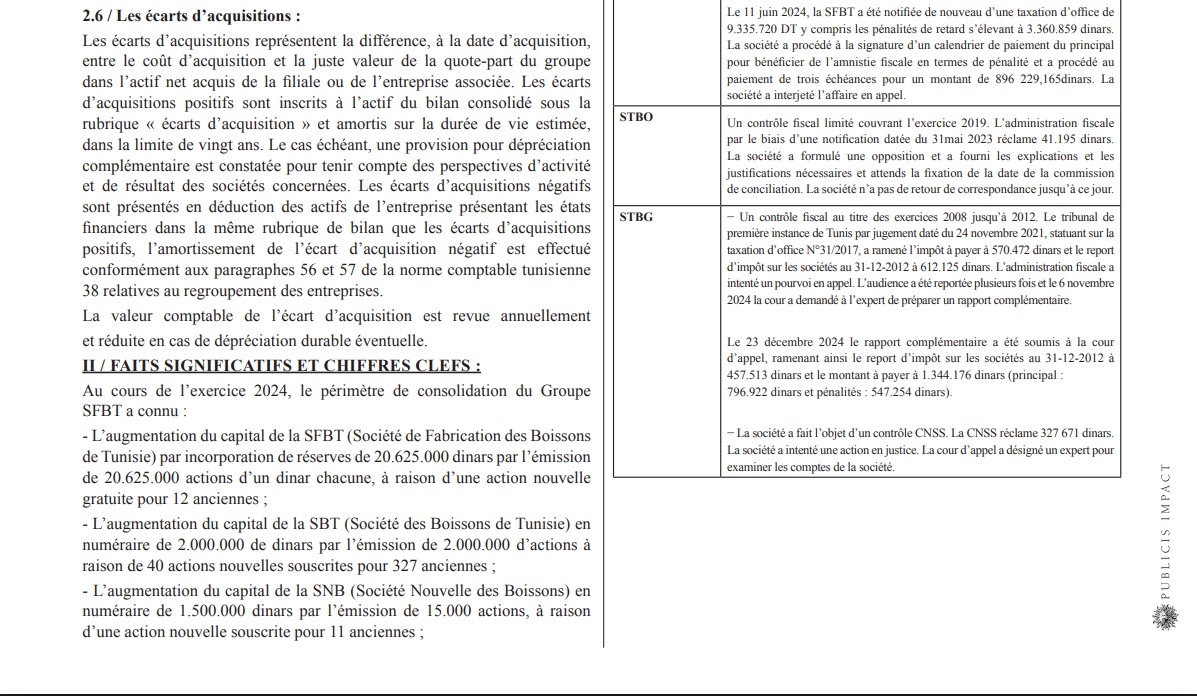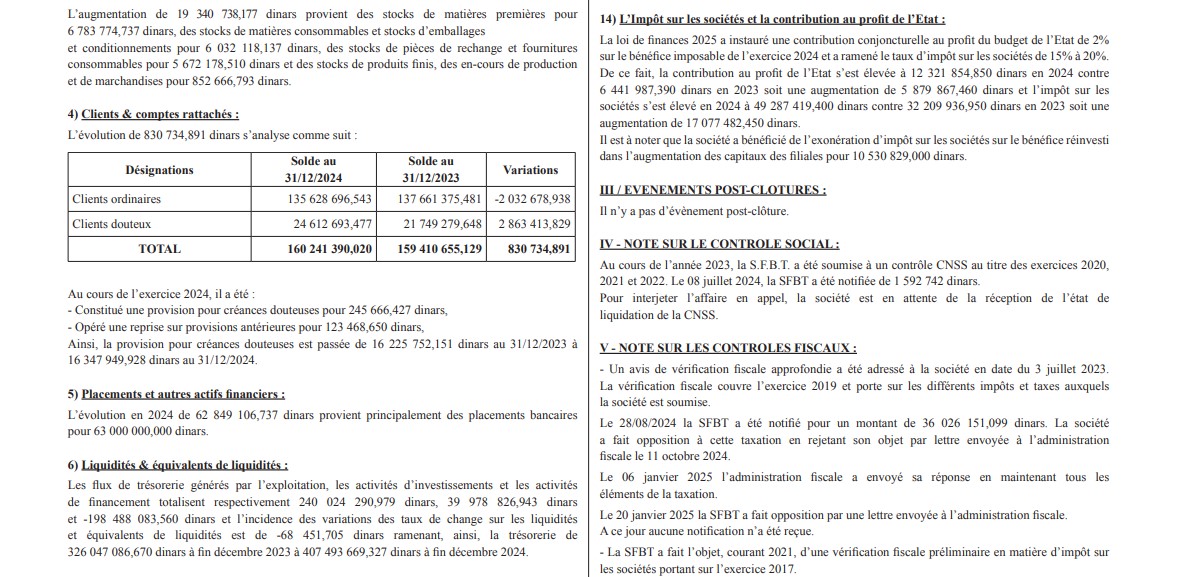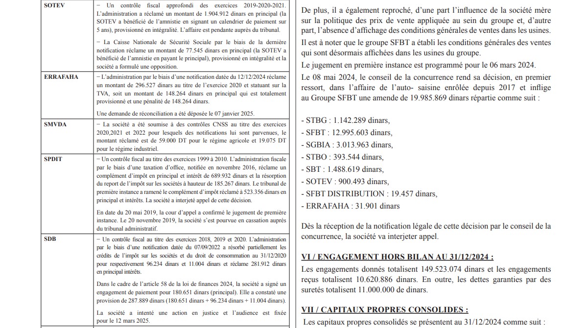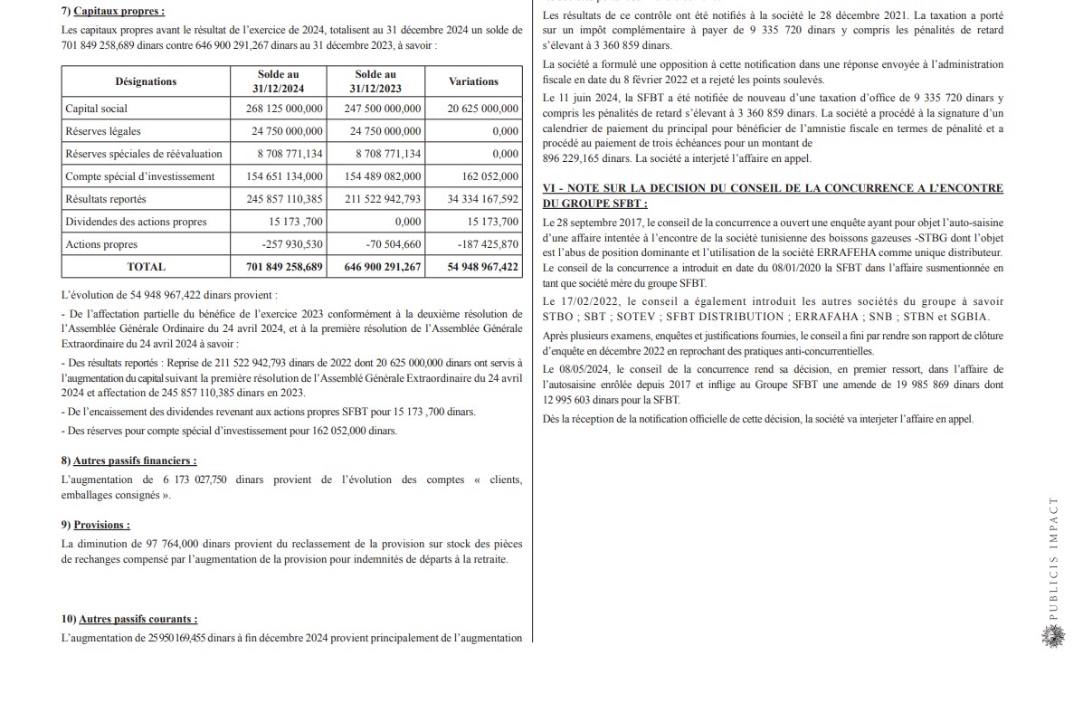 اقتصاد شركة صنع المشروبات بتونس (SFBT) تنشر قائماتها المالية الى غاية 31 ديسمبر 2024