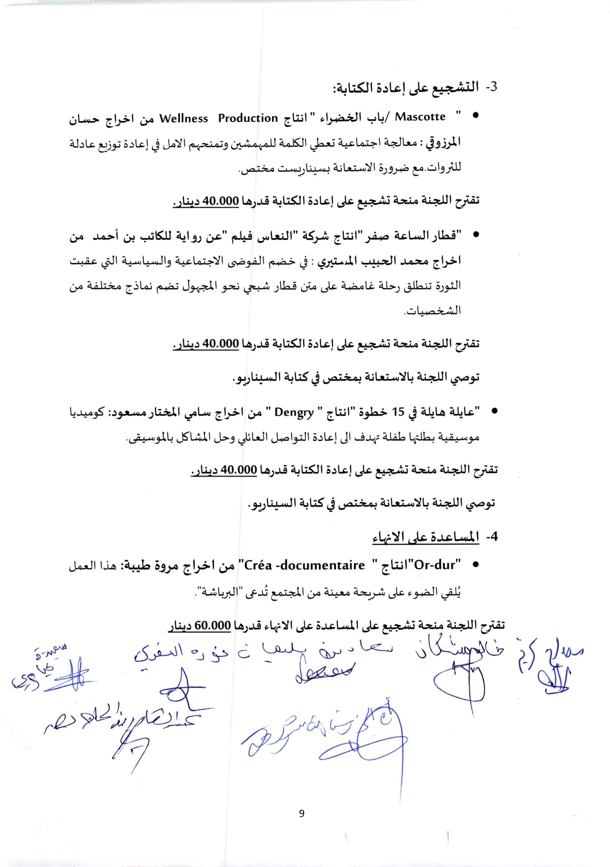 وقد بلغ عدد المشاريع المرشحة 103، موزّعة بين مطالب منح تشجيع على الكتابة واعادة كتابة وإنتاج أفلام قصيرة وإنتاج افلام طويلة ومشاريع إنهاء أفلام طويلة.