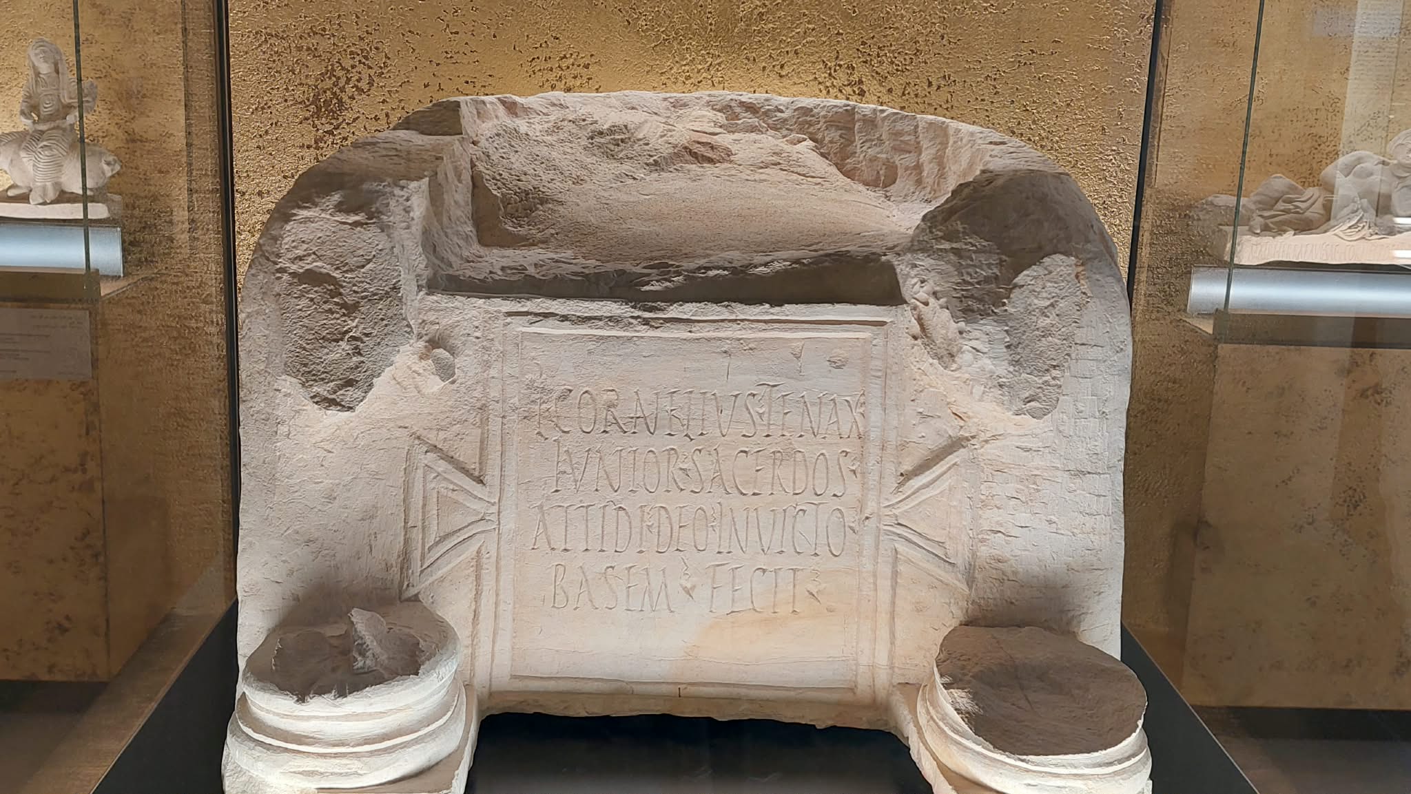 ركيزة كتب عليها نقيشة إهداء الى الاله "اتيس" من الكاهن "لوسيوس كورنيليوس تاناكس" النصف الثاني من القرن الثالث ميلادي.
