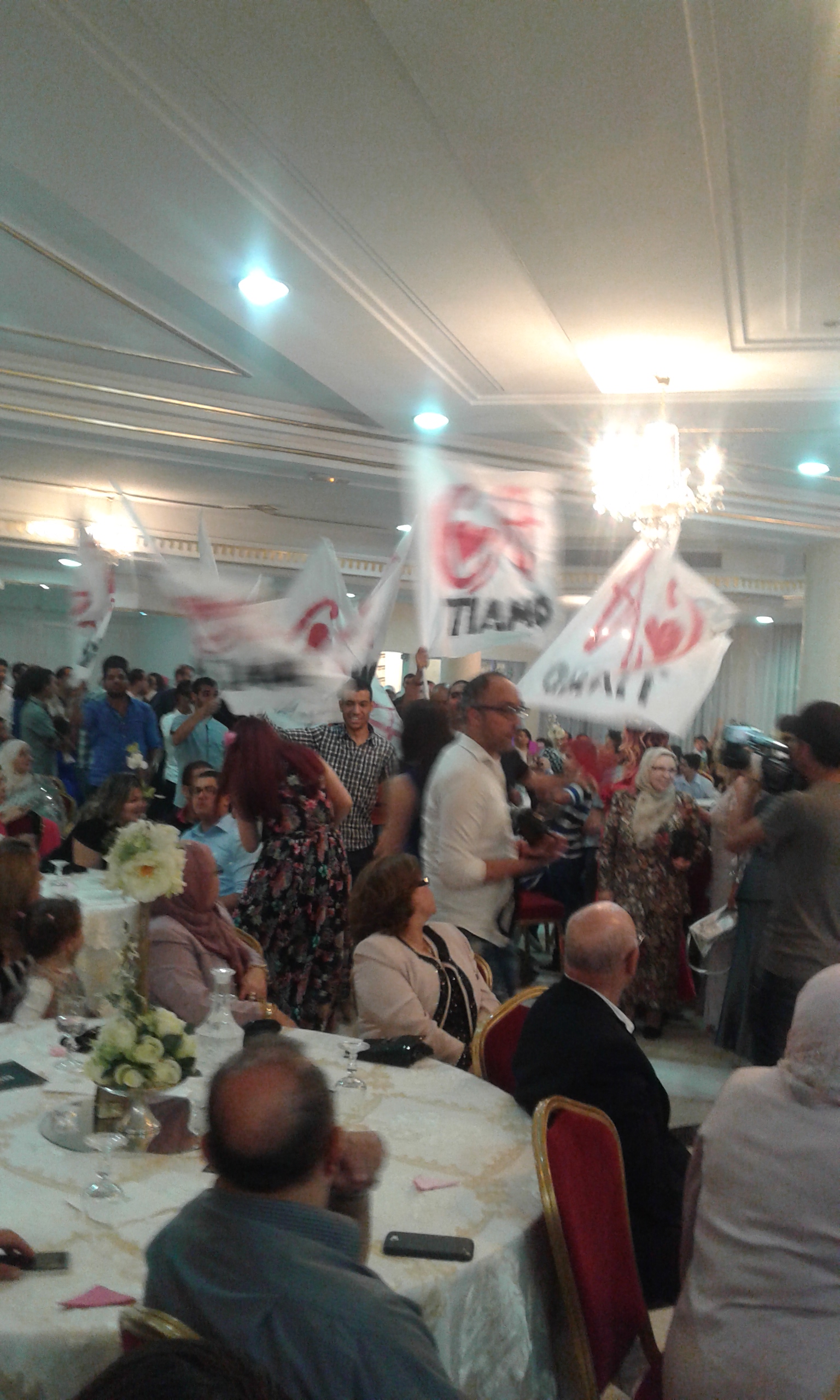 ويذكر ان الحفل حضرته عديد الوجوه من عالم السياسة والفن والتمثيل والاعلام ومن بين الحضور نذكر الشيخ عبد الفتاح مورو و سعاد عبدالرحيم ومن الفنانين نذكر منيرة حمدي وفايزة المحرصي وصلاح مصباح ومحمد الجبالي ورشدي علوان وايمان الشريف وحسين العفريت ومنال عمارة ونور شيبة الذي الهب الاجواء بعكازه اضافة الى فؤاد اللتيم وحنان الشقراني.
