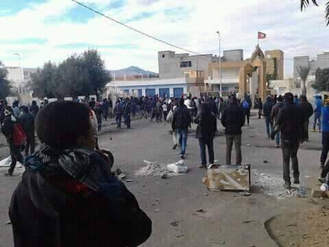 ويذكر أن رقعة الاحتجاجات التي تشهدها القصرين توسعت وطالت عديد المعتمديات والمناطق المجاورة .