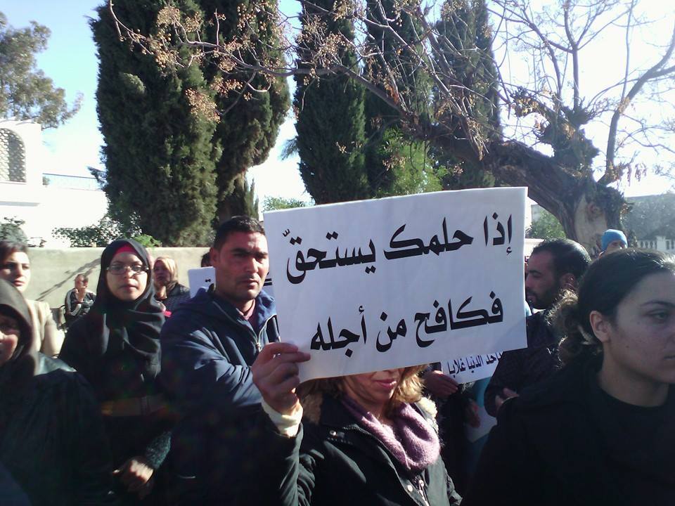 نظم عدد من المعطلين عن العمل ومن أصحاب الشهائد العليا بمعتمدية الدهماني من ولاية الكاف صباح اليوم الثلاثاء 26 جانفي وقفة احتجاجية رفعت فيها شعارات مطالبة بالتشغيل وبحق الجهة في التنمية، وأكد المحتجون أن معتمدية الدهماني كغيرها من معتمديات ولاية الكاف طالما عانت من الاقصاء والتهميش .