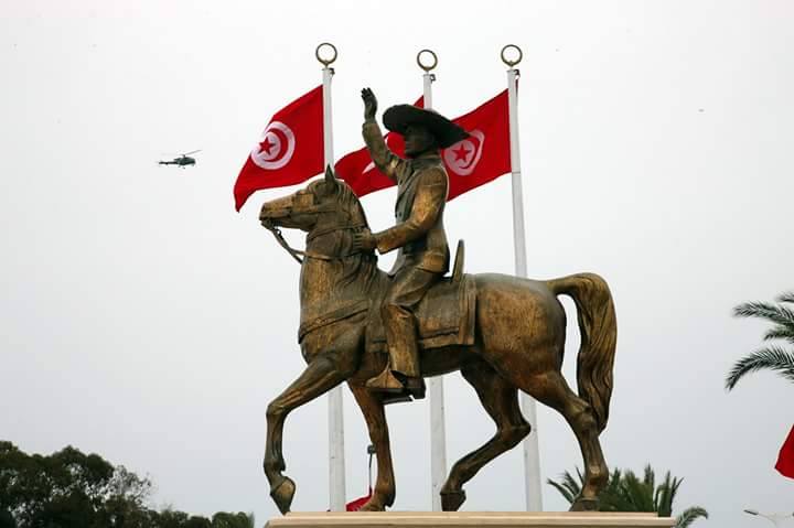 وقبل الموكب الخاشع بروضة آل بورقيبة، استقبل المواطنون السيد الرئيس بمدخل مدينة المنستير بمفترق الطرقات أمام القصر الرئاسي أين تم تدشين النصب التذكاري للزعيم الراحل الحبيب بورقيبة.
