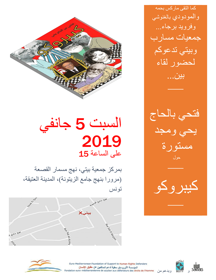 وذلك يوم السبت 5 جانفي 2019 على الساعة الثالثة بعد الزوال بمركز التكوين التابع لجمعية بيتي بالمدينة العتيقة بتونس.