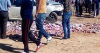 على قارعة الطريق: مشروبات كحولية ووقود مهرب بعد حادث اصطدام شاحنتي تهريب