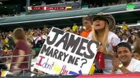 بالصورة: مشجعة كولمبية في المدرجات تطلب الزواج من نجم بلادها خاميس رودريغيز