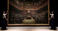 يجلس فيها قردة الشمبانزي مكان السياسيين: بيع لوحة "البرلمان المتخلف" للرسام بانكسي مقابل 40 مليار