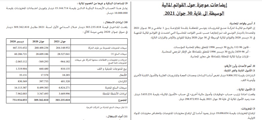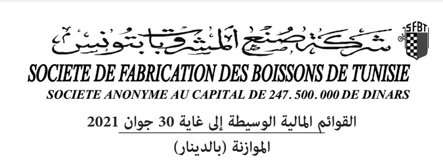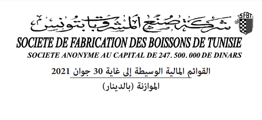 نشرت شركة صنع المشروبات بتونس (SFBT) القوائم المالية الوسيطة الخاصة بها الى غاية 30 جوان 2021.