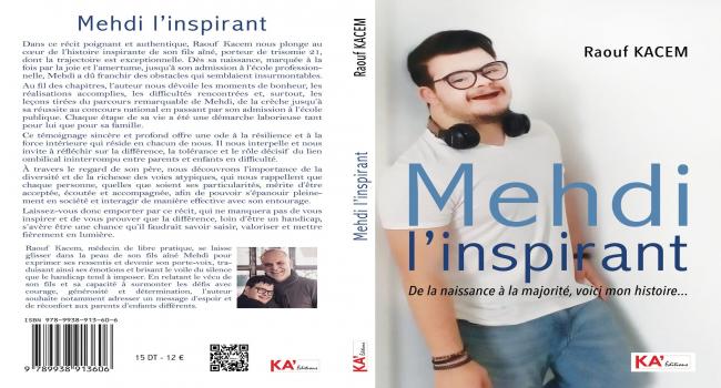 La maison d’édition « KA’Editions », dirigée par Hichem Kacem, vient de publier un nouvel ouvrage intitulé « Mehdi l’Inspirant », un livre biographique écrit par Raouf Kacem et portant sur la vie d’un jeune tunisien « Mehdi », dont la vie est marquée par les défis malgré la trisomie 21 dont il est atteint.