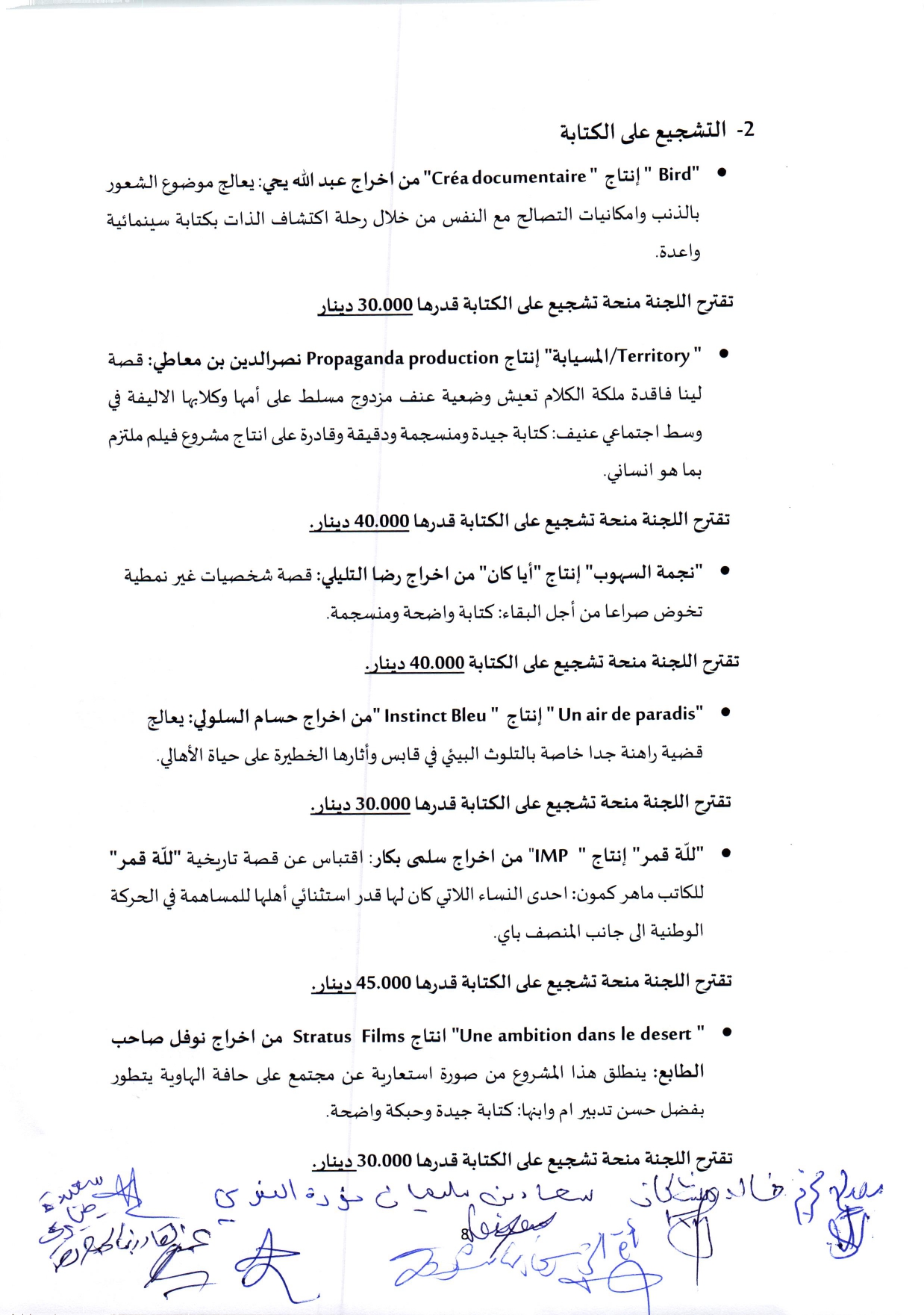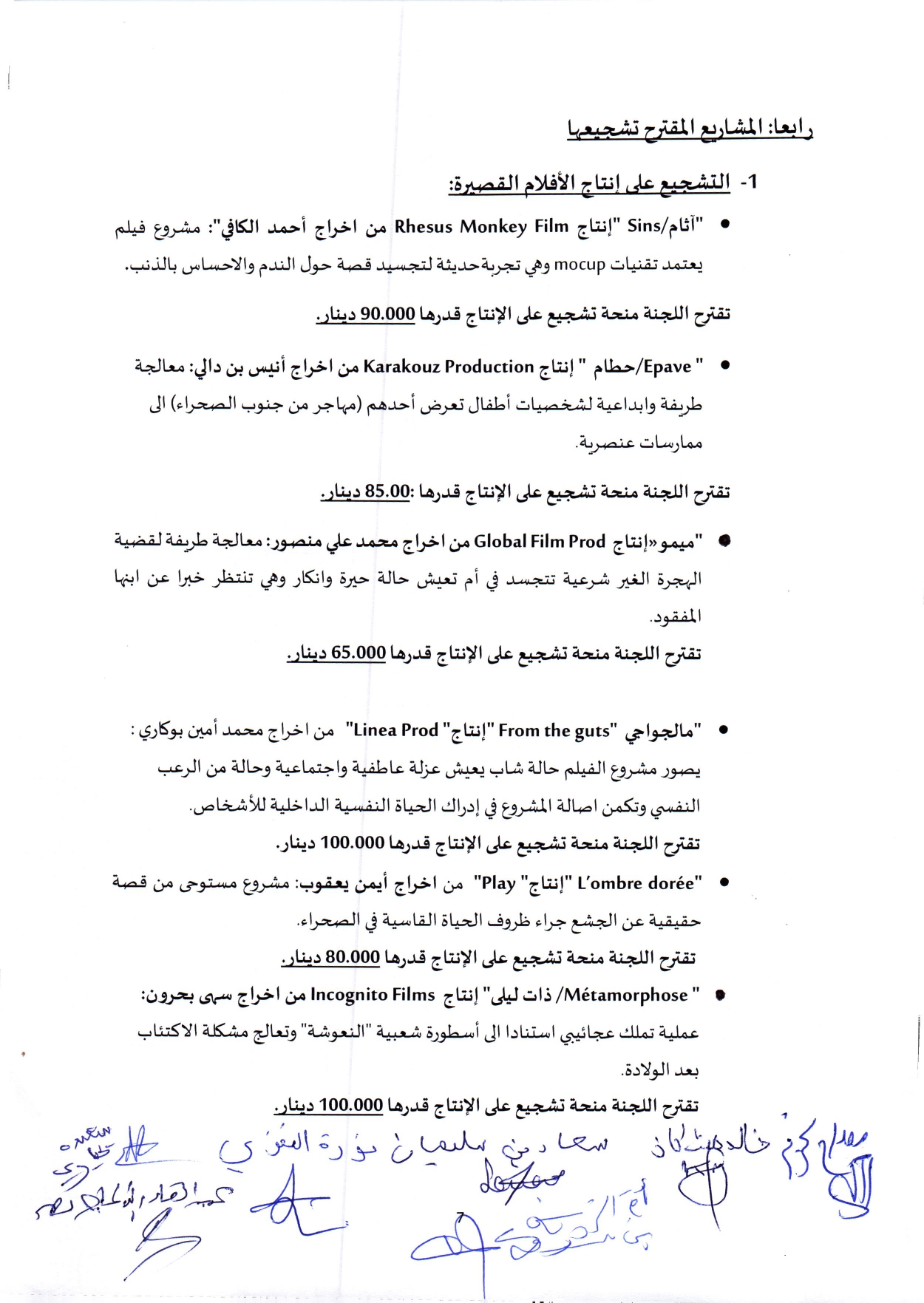 وقد بلغ عدد المشاريع المرشحة 103، موزّعة بين مطالب منح تشجيع على الكتابة واعادة كتابة وإنتاج أفلام قصيرة وإنتاج افلام طويلة ومشاريع إنهاء أفلام طويلة.