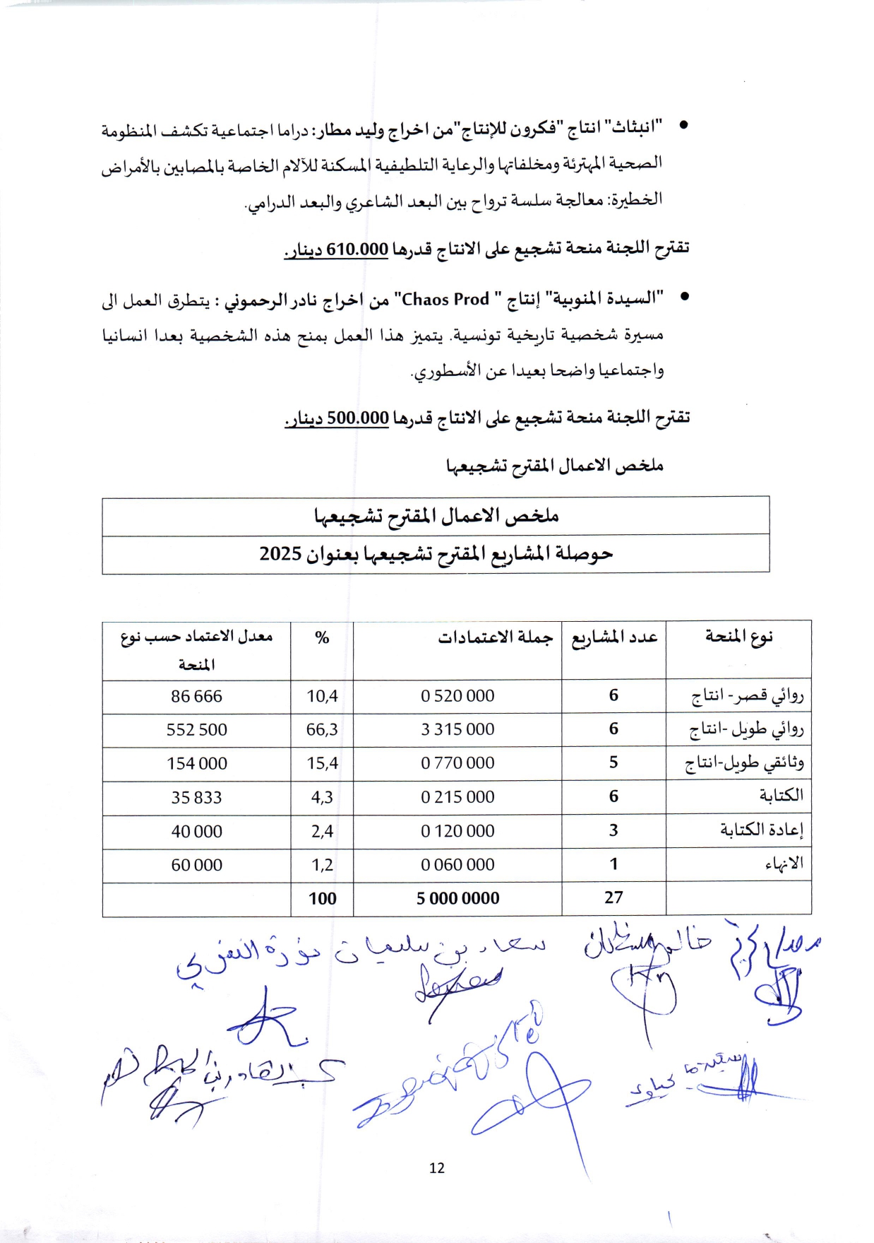 ثقافة قائمة المشاريع المتحصلة على منح التشجيع على الإنتاج السينمائي لسنة 2025