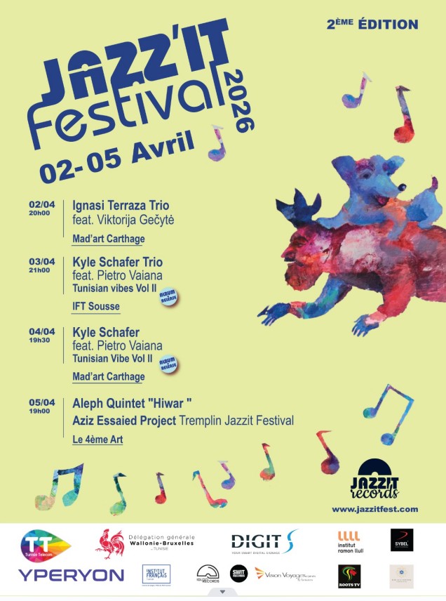 Le Jazzit Festival revient pour une deuxième édition, confirmant ainsi sa place dans le paysage musical tunisien. Lancé par le label Jazzit Records, ce festival dédié au jazz et aux musiques du monde annonce quatre jours de concerts, de rencontres, master classes et de découvertes, du 2 au 5 avril.
