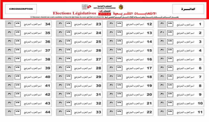 كما نشرت هيئة الانتخابات نموذجا لورقة التصويت في الانتخابات التشريعية وهى في شكل أعمدة متوازية يحتوى كل عمود على خانات مرتبة وتتضمن كل خانة رقم القائمة المترشحة واسمها ويوجد أمامها مربع مخصص للناخب لكي يضع علامة قاطع ومقطوع أمام القائمة التي سينتخبها ويوجد أمامها مربع مخصص لصورة رمز القائمة.