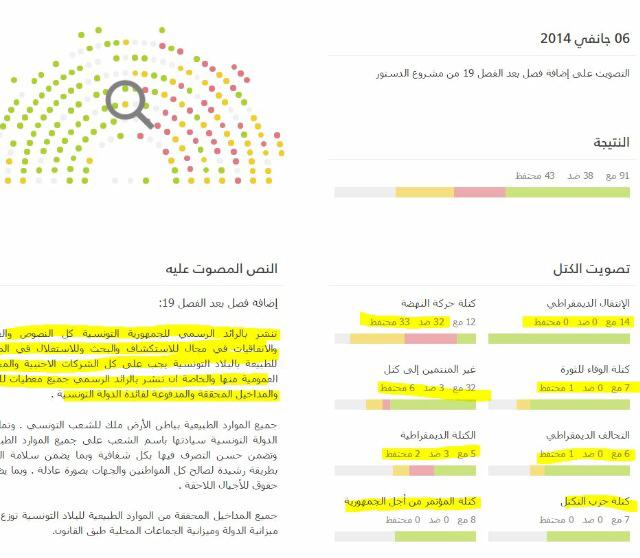 نشر النائب السابق محمود الباردوي وثيقة تؤكد أن نواب النهضة صوتوا ضد عرض عقود الإستثمار البيترولية على مجلس النواب معتبرا أنهم كانوا ضد الشفافية وصوتوا ضدّ الفصل الذي يمكّن الشعب التونسي من معرفة حقيقة ثرواته الطبيعيّة. وقال البارودي ما يلي: "للتاريخ: الجماعة إلّي كانو ضّد الشفافيّة وصوّتوا ضدّ الفصل الّي مكّن الشعب التونسي من معرفة حقيقة ثرواته الطبيعيّة، توّة ولاّو يزايدو على خلق ربّي...راني مانيش نقصد في مجموعة هامّة من التوانسة إلّي انخرطوا في الحملة هاذي و لكن العباد إلّي قاعدة تحرّك في الحملات الممنهجة بصفة لا وطنيّة...