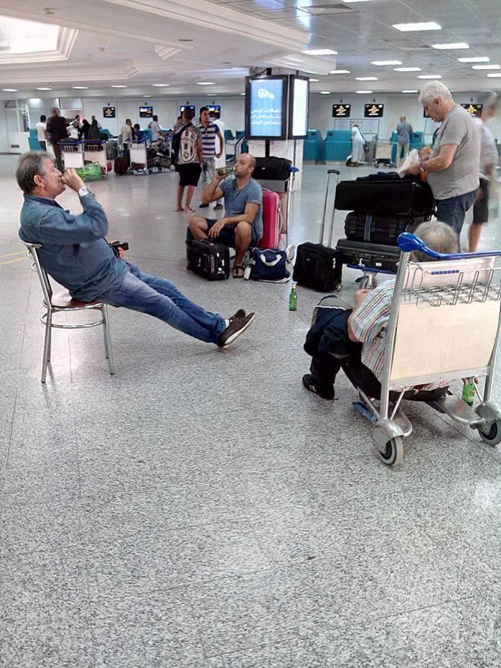 وصلتنا للتو هذه الصور "الفريدة" من نوعها من مطار تونس قرطاج.. بعض السواح بصدد احتساء الجعة في بهو المطار الذي يمنع فيه تدخين السجائر فما بالك بالكحول!! والمؤكد ان هناك مكانا مخصصا لشرب الجعة في المطار، لكن ان يصبح المقهى متجولا في انحاء المطار فهذا لم نلحظه في أي مطار في العالم.. ولكم حرية التعليق طبعا.