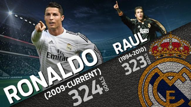 أصبح البرتغالي كريستيانو رونالدو هداف نادي ريال مدريد الإسباني برصيد 324 هدفاً بعد تسجيله اليوم السبت في مرمى ليفانتي لحساب الجولة الثامنة من الليغا متخطيا رقم راؤول المهاجم السابق للفريق.