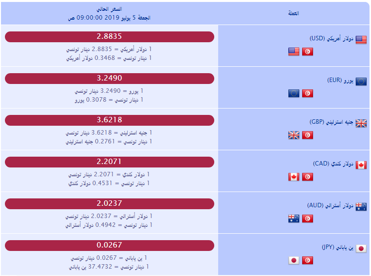 وفي ما يلي أسعار بقية العملات بالدينار التونسي: