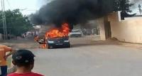 مواطن يضرم النار في سيارته أمام مركز حرس