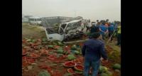 اصطدام شاحنتين احداهما محملة بالدلاع يسفر عن وفاة شخص