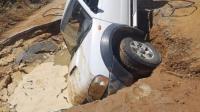 بني خلاد: سقوط شاحنة داخل حفرة جراء انفجار انبوب مياه