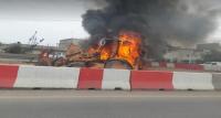 بالصورة: احتراق جرار بالكامل تابع لأشغال المدخل الجنوبي للعاصمة