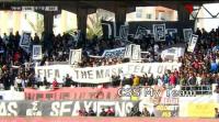 أنصار النادي الصفاقسي يرفعون لافتة كتب عليها " الفيفا.. وسقطت الأقنعة"