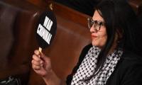 رشيدة طليب ترفع لافتة مكتوب عليها ''مجرم حرب'' بوجه نتنياهو في الكونغرس